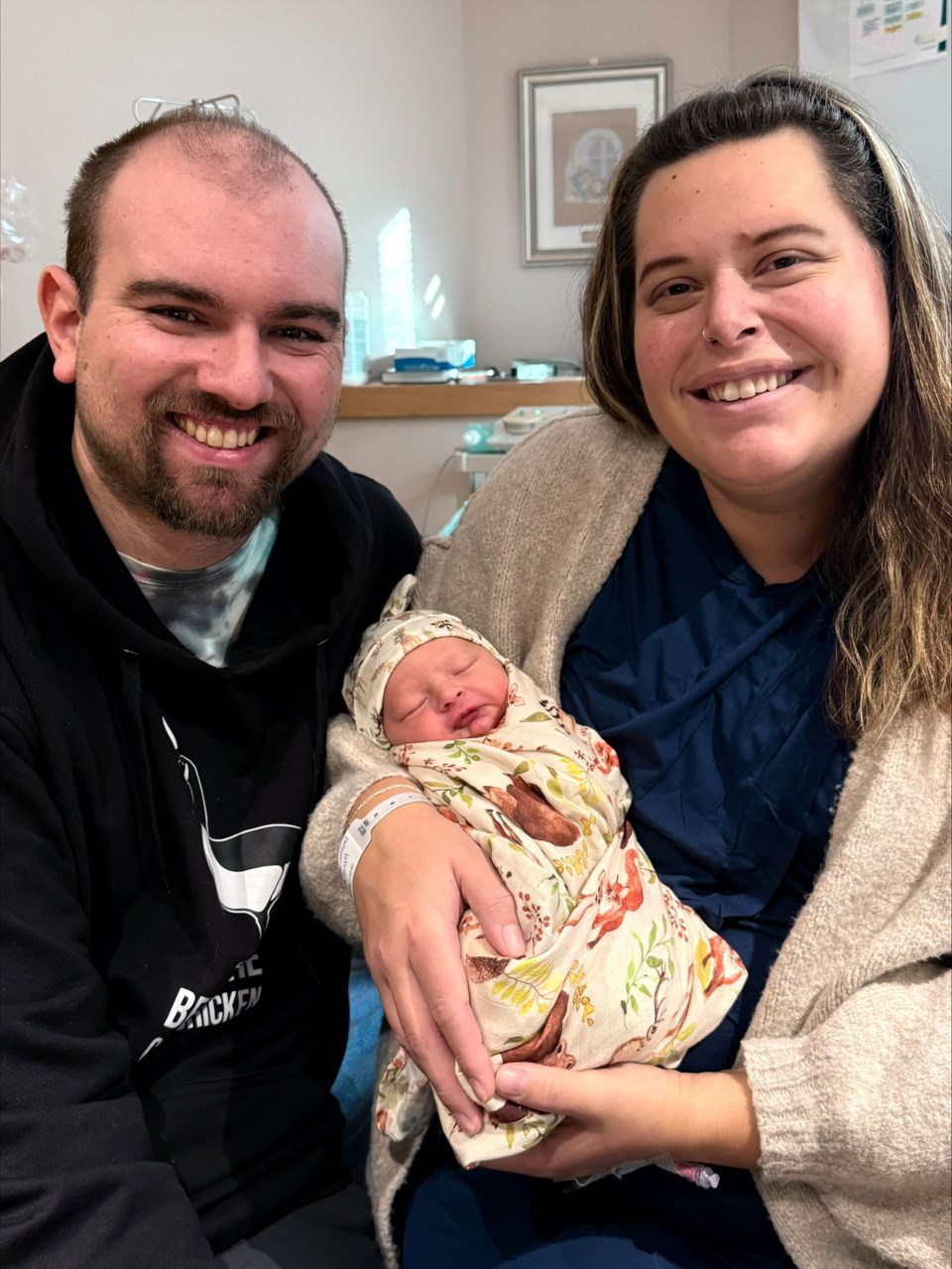 The couple arrived at the Dryden Regional Health Centre on December 31 for an induction, anticipating a January 1 delivery. Marissa described the experience, saying, “It ended up being kind of a full day of labour and kind of a long, long day — as it usually is. And then, sure enough, around 11:45 p.m., I started pushing and he came out at 12:09 a.m. on the second.”