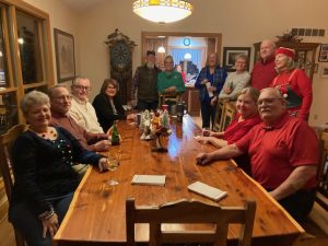 The annual Christmas social continued at the home of Jerry and Eve Yaekel, where the atmosphere was warm and welcoming. Attendees enjoyed a delicious meal prepared by the December Social Committee, which set the tone for a delightful evening of camaraderie and festive cheer.