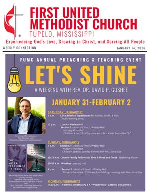 The First United Methodist Church in Tupelo will host its annual preaching and teaching event, Let’s Shine, inviting community members to participate from January 31 to February 2, 2024. This three-day event aims to foster spiritual growth and community engagement through various activities, including a day dedicated to community service.