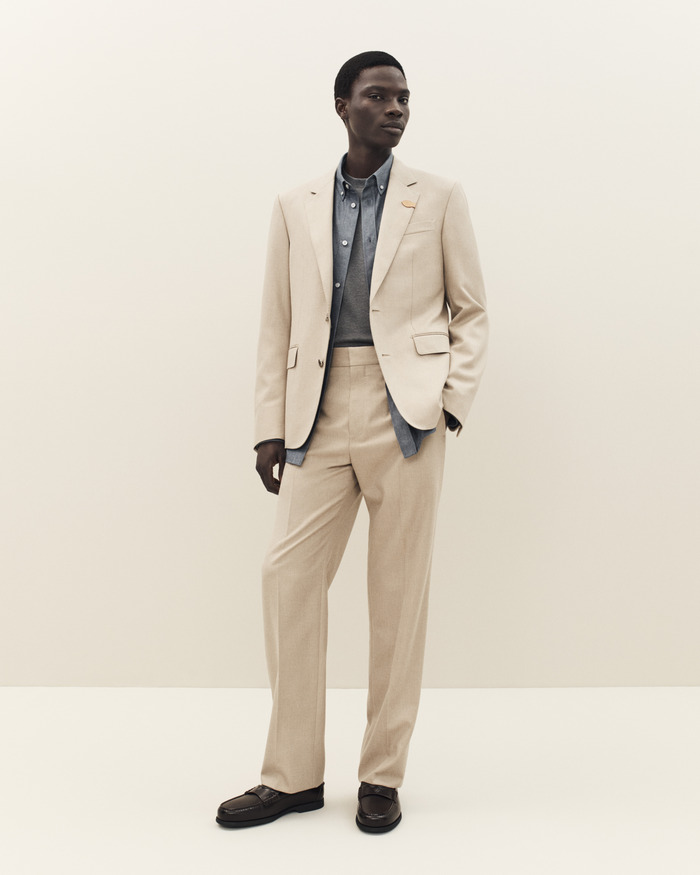 City-ready garments such as a silk-blend field jacket, brushed-cashmere coat, and a water-repellent wool workwear jacket are designed for practical layering. These pieces pair well with cotton-silk chambray shirts and cashmere-silk twill stripes, which are intended for relaxed styling. The trousers, made from peach-soft cotton-silk gabardine, offer structure without compromising comfort, while knitwear features luxurious blends of cashmere, silk, and wool.