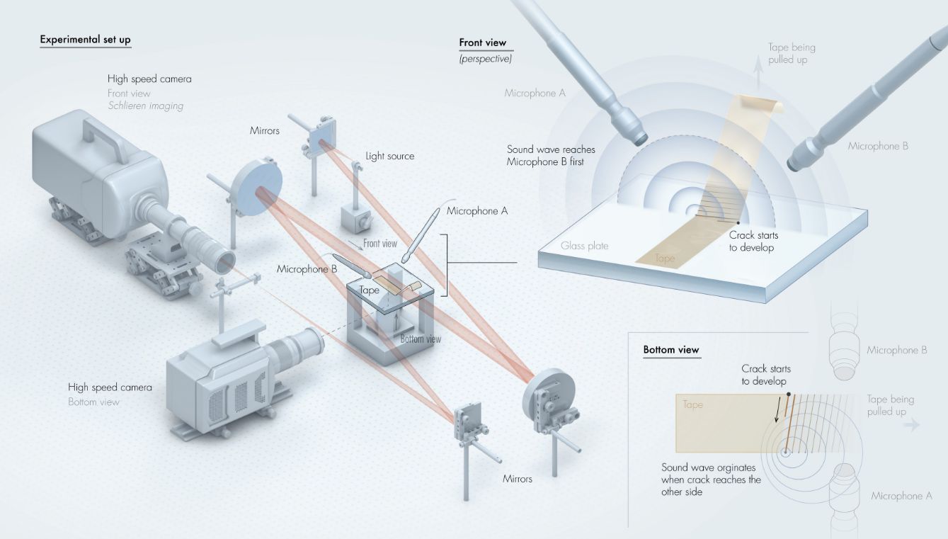 To investigate this phenomenon, the researchers employed a sophisticated setup that combined rolls of adhesive tape with two microphones and high-speed cameras within a Schlieren imaging system. This combination allowed them to capture the intricate details of what happens at the microscopic level when tape is peeled away from its roll.