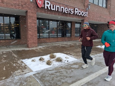 As of now, the race is neck-and-neck, with Kornicer trailing Lakowske closely. The atmosphere at Runners Roost is electric, with participants stopping to refuel with treats and coffee provided by the store. The community spirit is palpable, with many runners sharing camaraderie while battling the elements.
