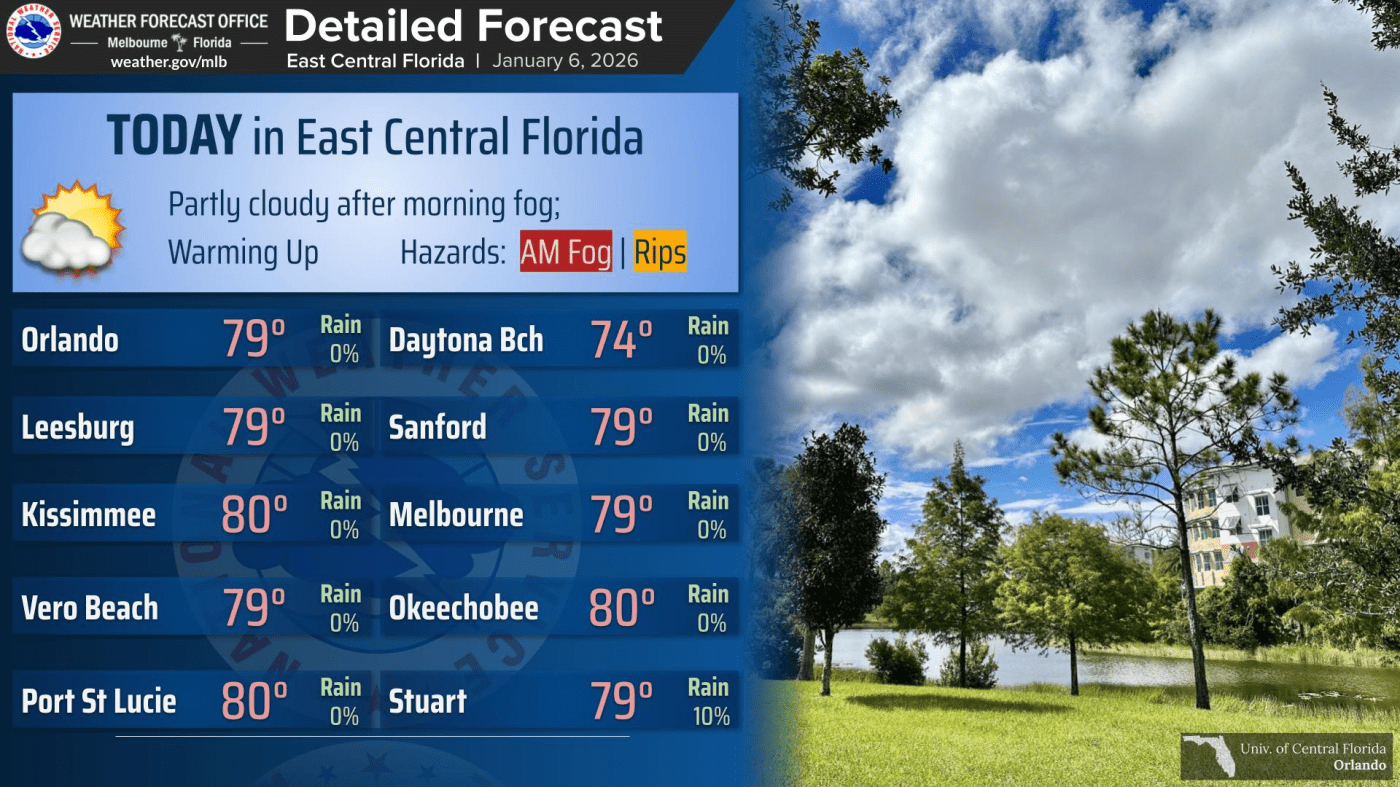 Central Florida Faces Dense Fog, Warmer Temps, and Rip Currents