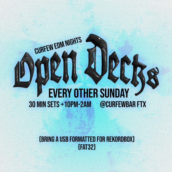 This event is perfect for anyone eager to play new music and connect with fellow artists. Bring a USB formatted for rekordbox and prepare a 30-minute set of your best tracks! Sign-ups will begin promptly at 9:30 PM, with sets lasting between 15-30 minutes depending on the number of participants.