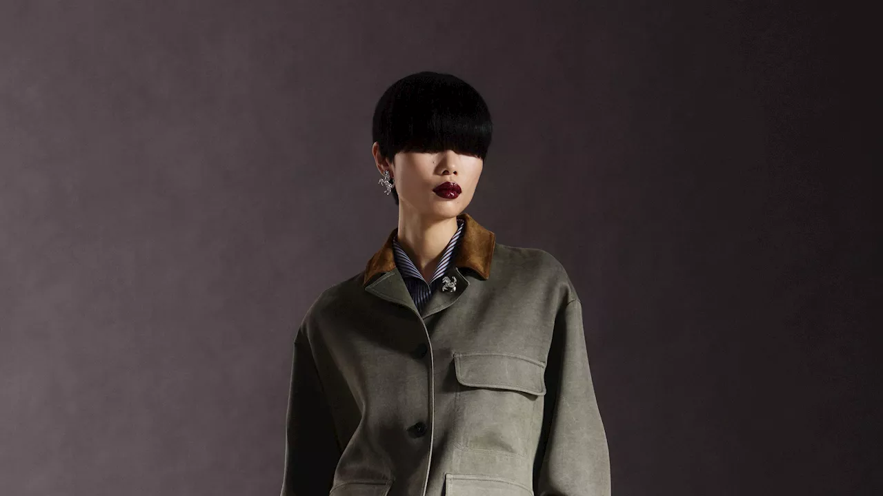 The collection also features standout pieces in leather, including a sharp double-breasted oxblood caban for women, expertly styled with matching trousers, boots, and bags. Additionally, the lineup includes calfskin work jackets and suede bombers, all infused with racing-suit details that resonate with the brand’s automotive heritage.
