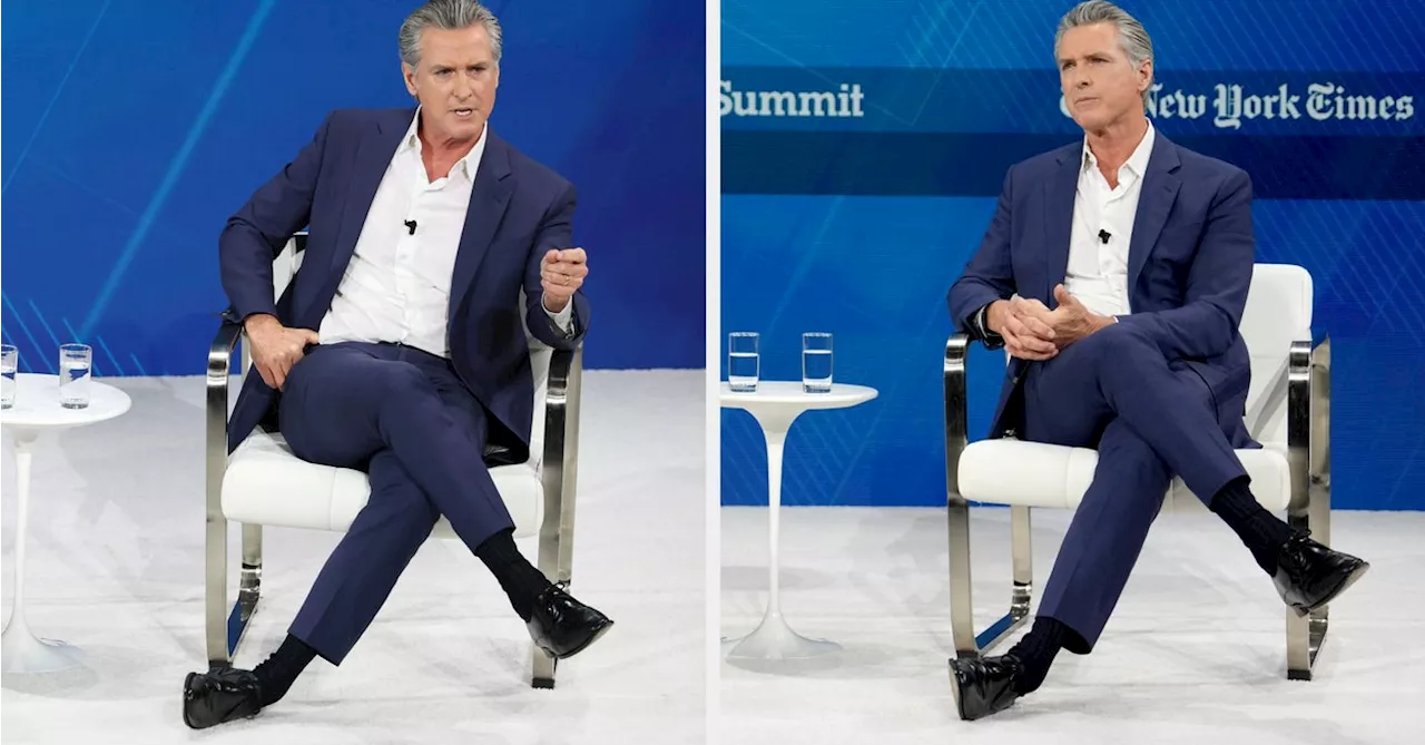 JUST ANNOUNCED: Newsom’s unorthodox sitting position has drawn sharp reactions from conservative circles, with some critics questioning his masculinity. One Twitter user exclaimed, “I have literally never seen a man that sits like this,” while another conservative voice inquired, “What kind of man is able to cross his legs?”