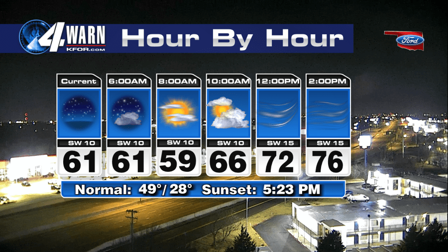 Morning temperatures across the region started in the comfortable range of the upper 50s to lower 60s, setting the stage for a pleasant afternoon. As the day progresses, residents can anticipate a swift rise in temperatures, reaching as high as 78°F by midday, according to KFOR meteorologists.