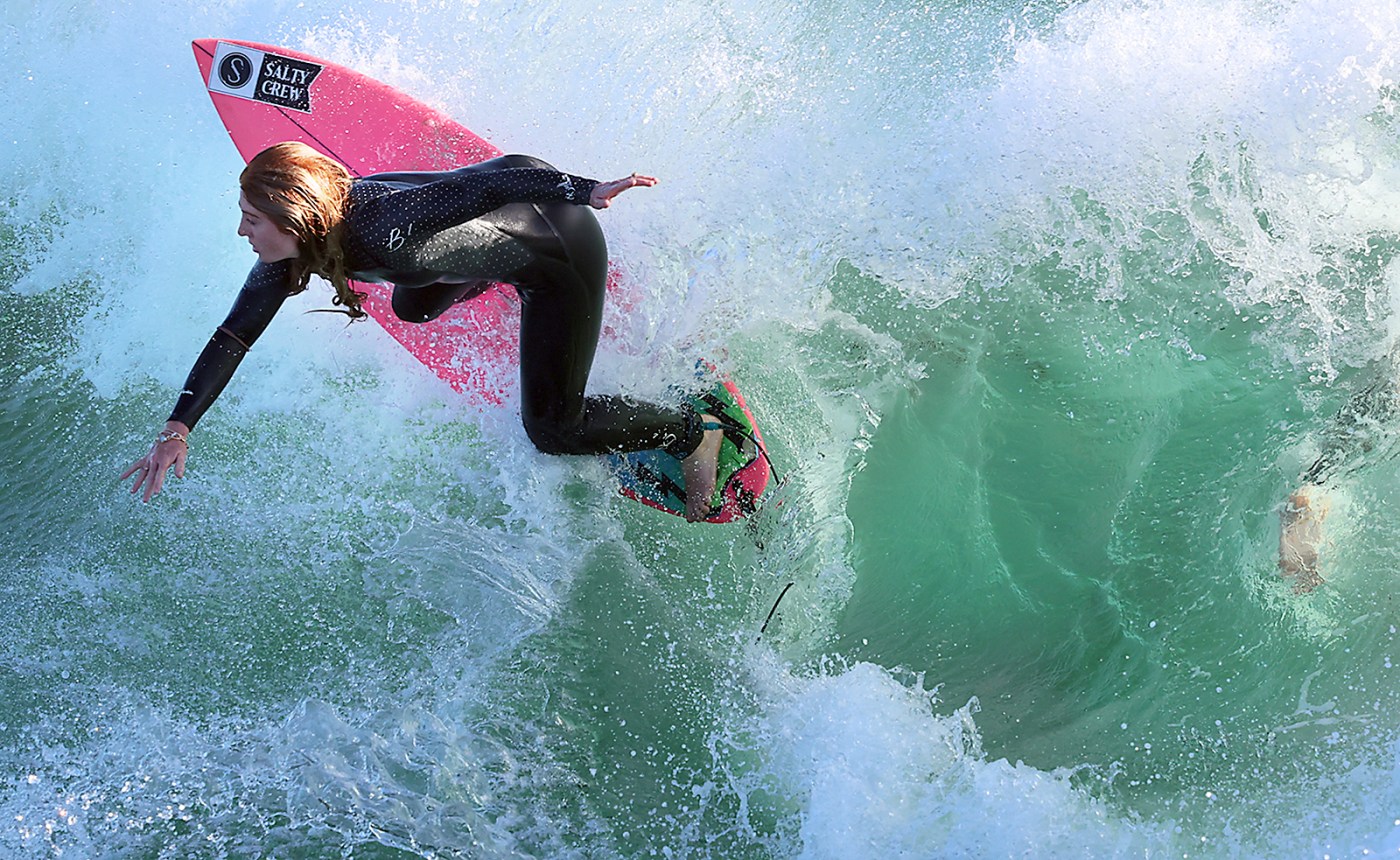 During the mock competition, Nadia Aptekarev, a standout member of the Mission Hill surf team, demonstrated her prowess by expertly maneuvering past fellow athletes. The event not only highlighted her skills but also fostered camaraderie among local surf teams, creating an electrifying atmosphere at one of California’s premier surf spots.
