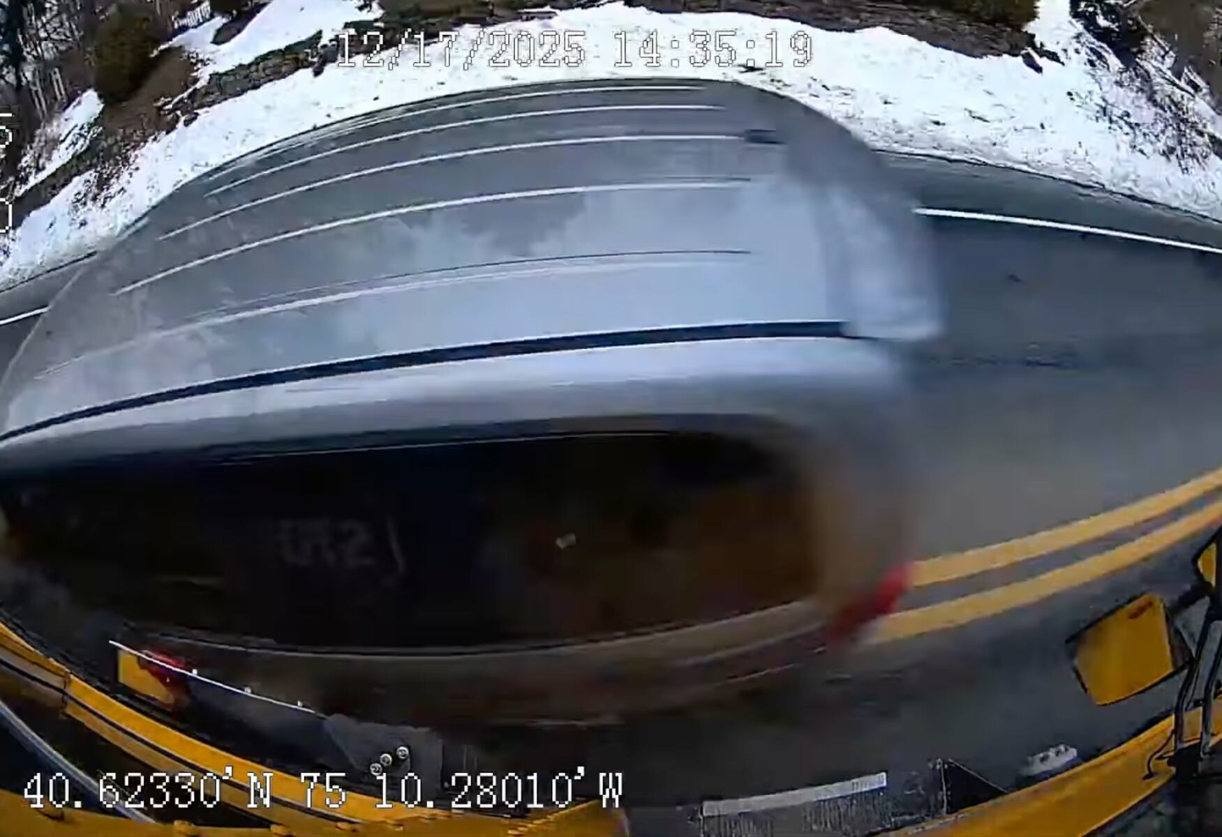 Authorities report that the vehicle involved is a silver Dodge Grand Caravan bearing a New Jersey license plate. Eyewitness accounts and video footage from the school bus reveal that the minivan was traveling at approximately 32 mph when it veered into the bus’s lane, crossing double yellow lines before making contact. The impact could have left scuff marks and yellow paint transfer on the driver’s side of the minivan.
