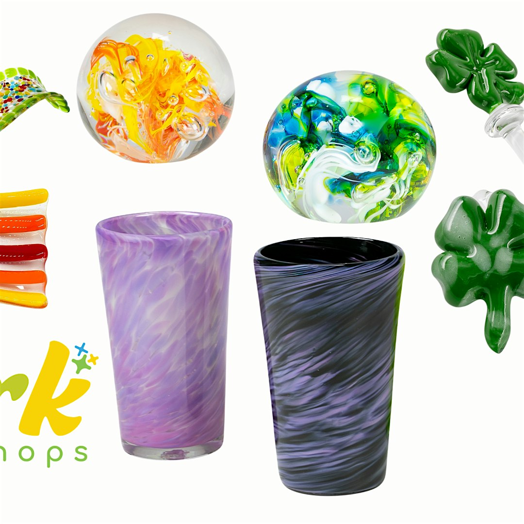 In the Hot Shop, classes include crafting a pint glass or a paperweight, each available in 30-minute sessions for ages 10+ and 8+ respectively. For those interested in kiln forming, a 60-minute session for creating a spoon rest is available for ages 14+, priced at $60. Additionally, flame working enthusiasts can join a 45-minute session to create a clover set for ages 8+, also at $60.