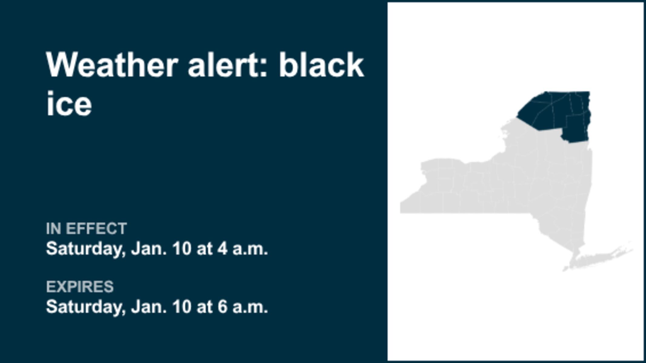 UPDATE: A critical weather alert has been issued for several counties in New York, warning of dangerous black ice conditions. The National Weather Service confirmed the alert early Saturday morning, effective from 4 a.m. until 6 a.m. today, impacting residents in St. Lawrence, Franklin, Clinton, and Essex counties.